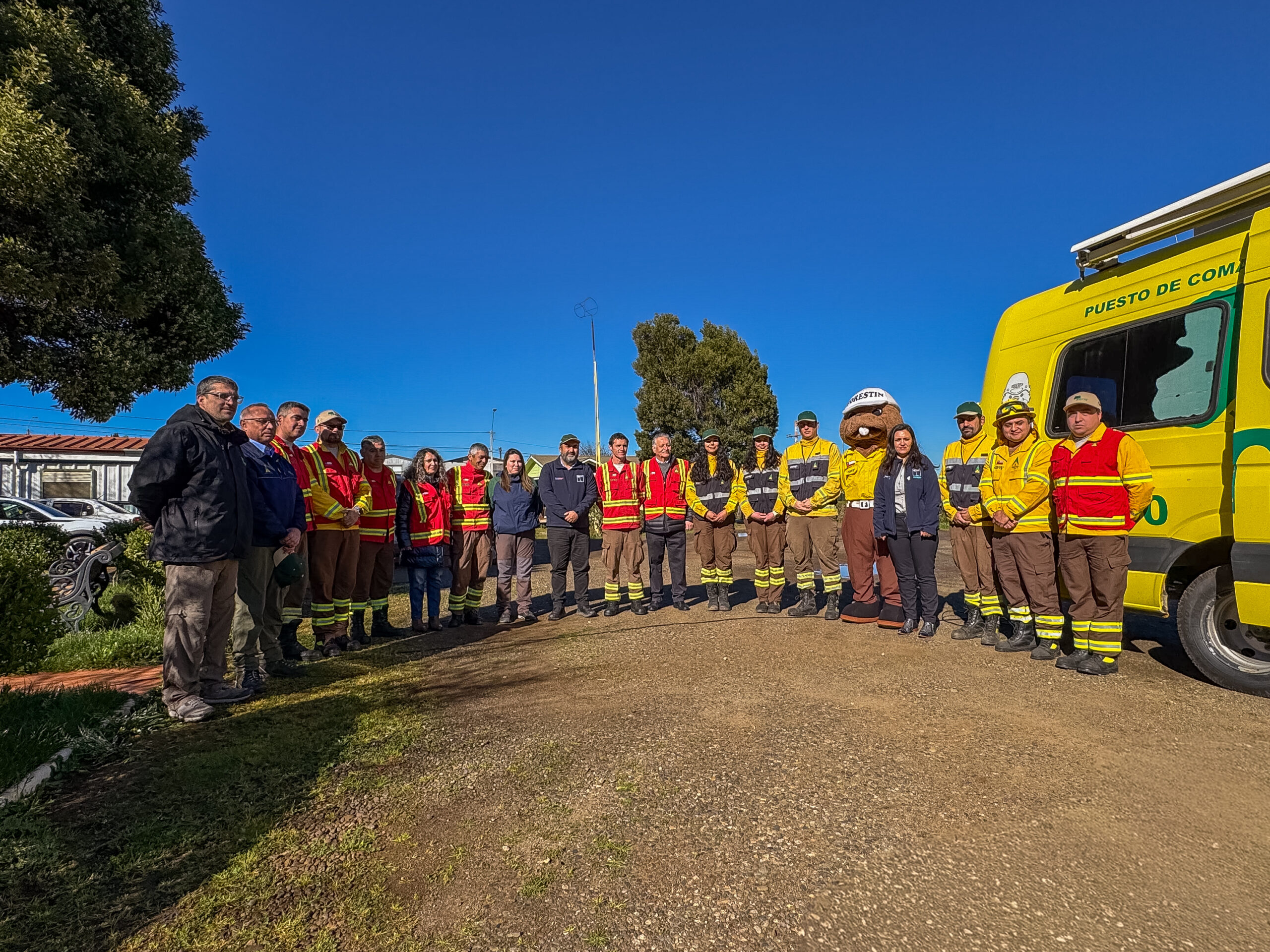 Brigadistas de Conaf junto con Forestín.